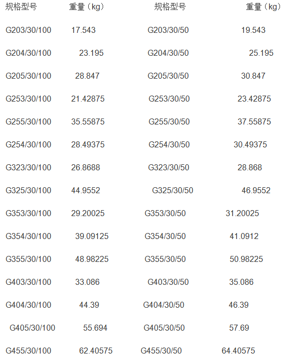 鋼格柵踏步板是由扁鋼和麻花鋼按照一定的孔距排列然后點(diǎn)焊而成的,它的規(guī)格有G303/30/100 、 G405/30/100、G605/30/50等多種規(guī)格,G表示熱鍍鋅,303 405 605表示扁鋼的寬度和厚度,30/100表示孔的大小。鍍鋅鋼格柵踏步板理論重量表見下圖:例如G303/30/100格柵板理論重量為17.543公斤,G303/30/100的鋼格柵步板理論重量為21.9公斤。